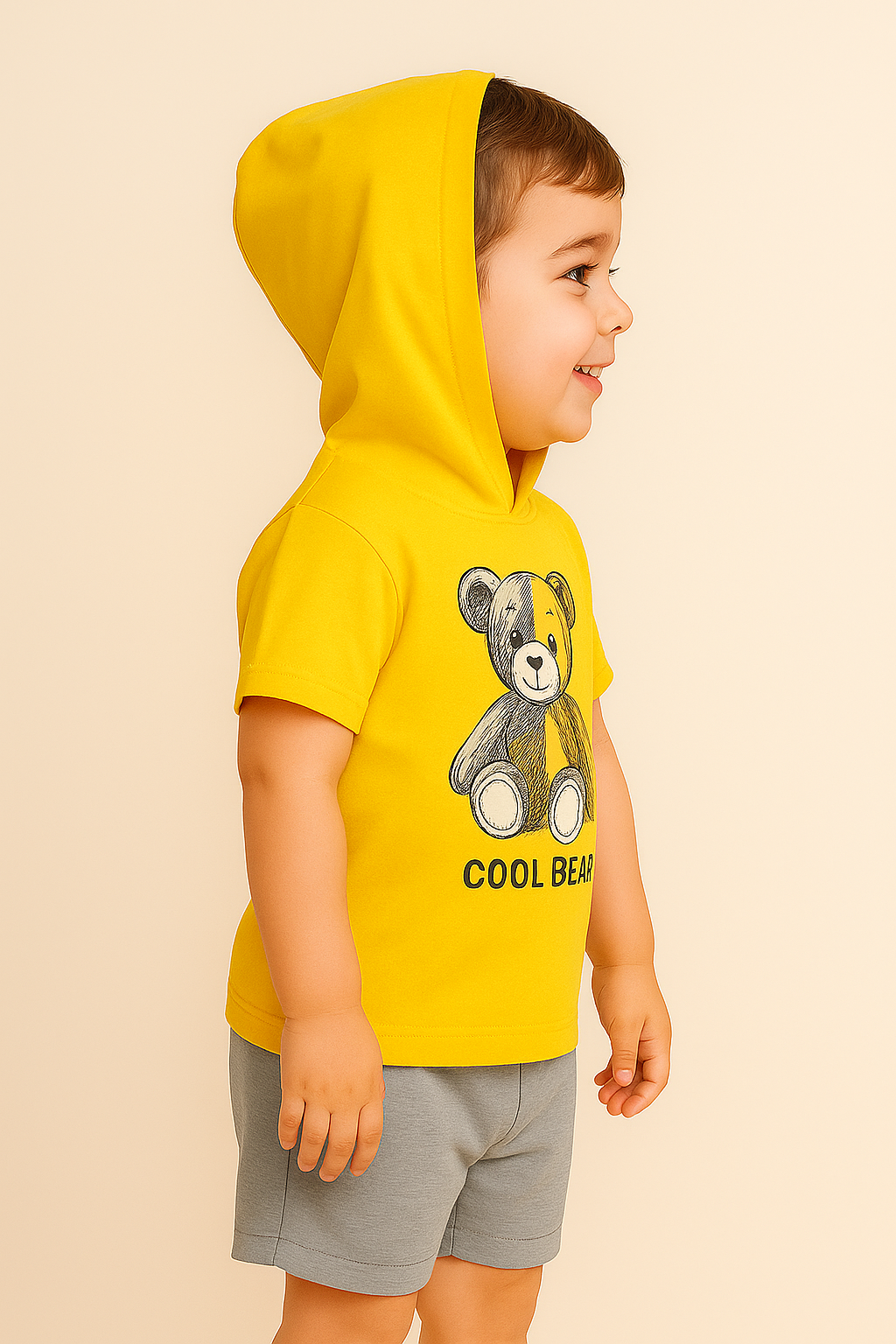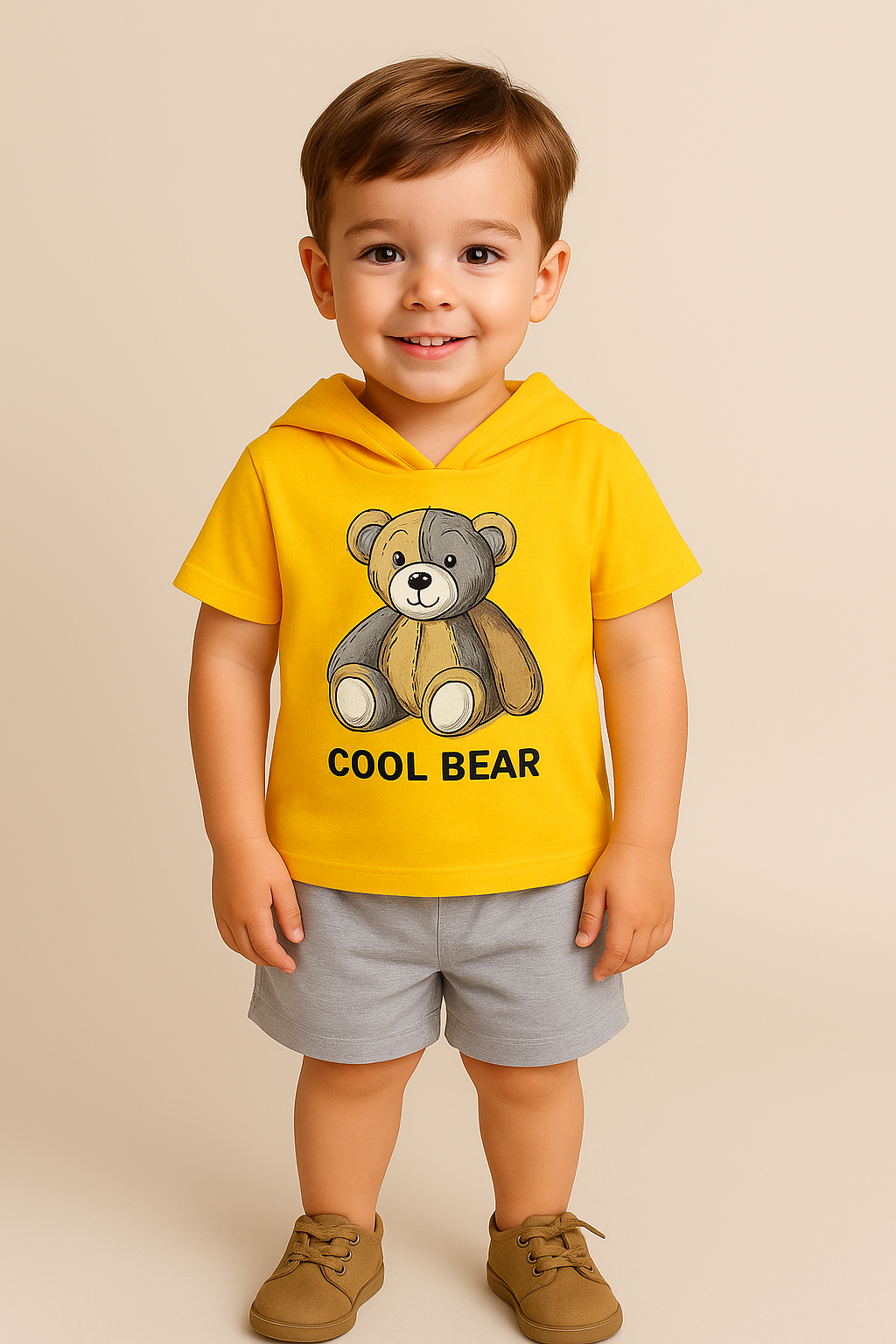 Cool Bear Kids Clothing Set – Yellow Hoodie T-Shirt & Grey Shorts for Toddlers