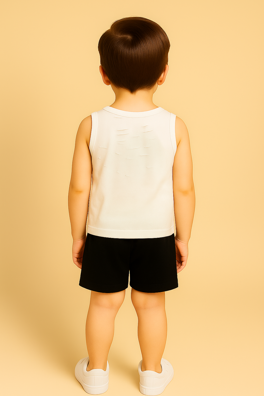 Made from soft, breathable cotton fabric, this toddler summer outfit ensures your child stays cool and comfy all day long. The sleeveless T-shirt allows easy movement, while the elastic waist shorts provide a snug yet flexible fit for active kids.