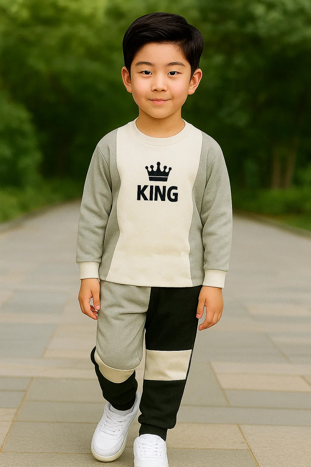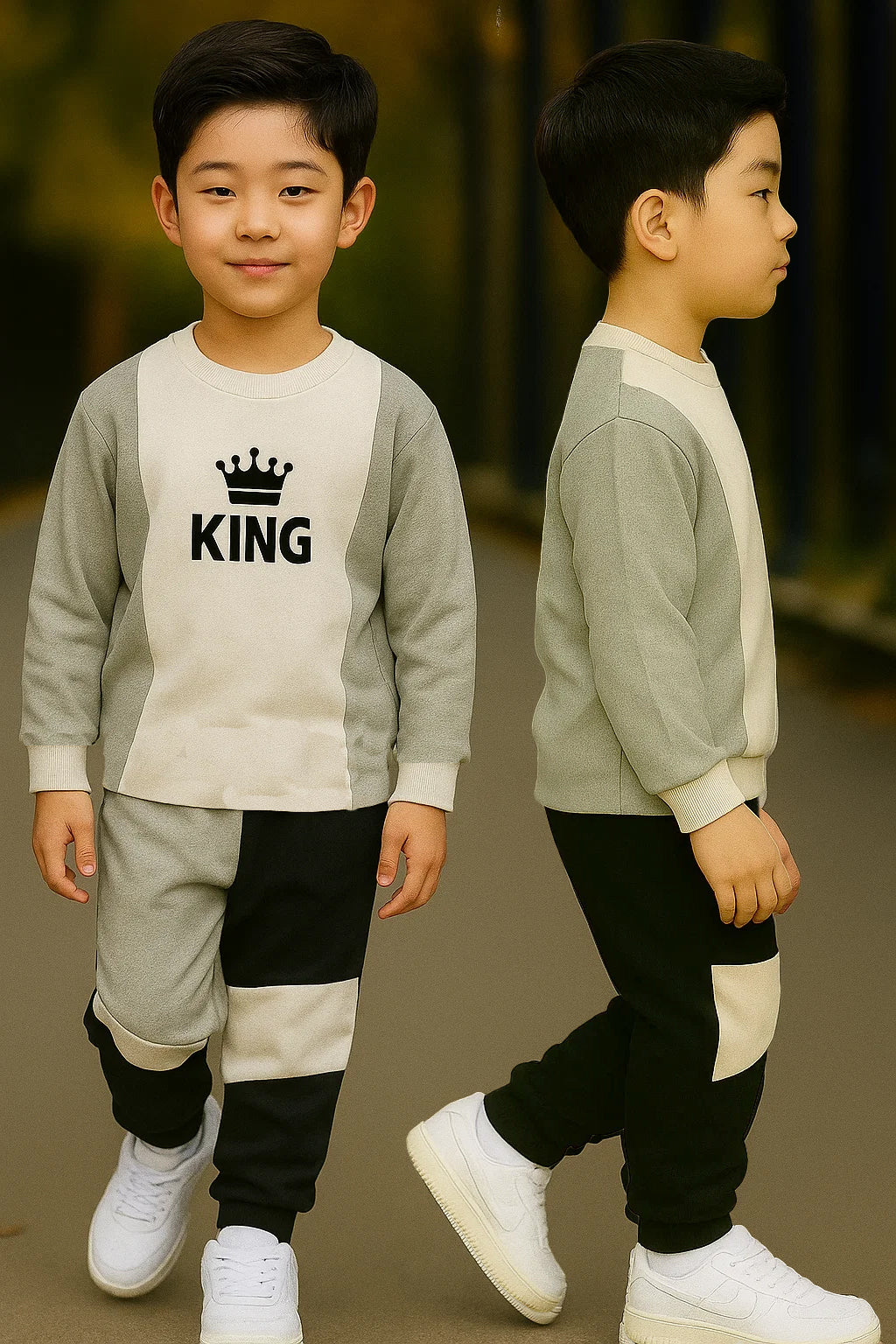 Whether you’re searching for a stylish kids outfit, boys tracksuit set, or comfortable kidswear for daily use, this “KING” printed clothing set is the perfect choice. Pair it with sneakers for a complete sporty look.