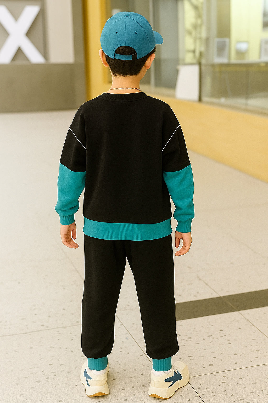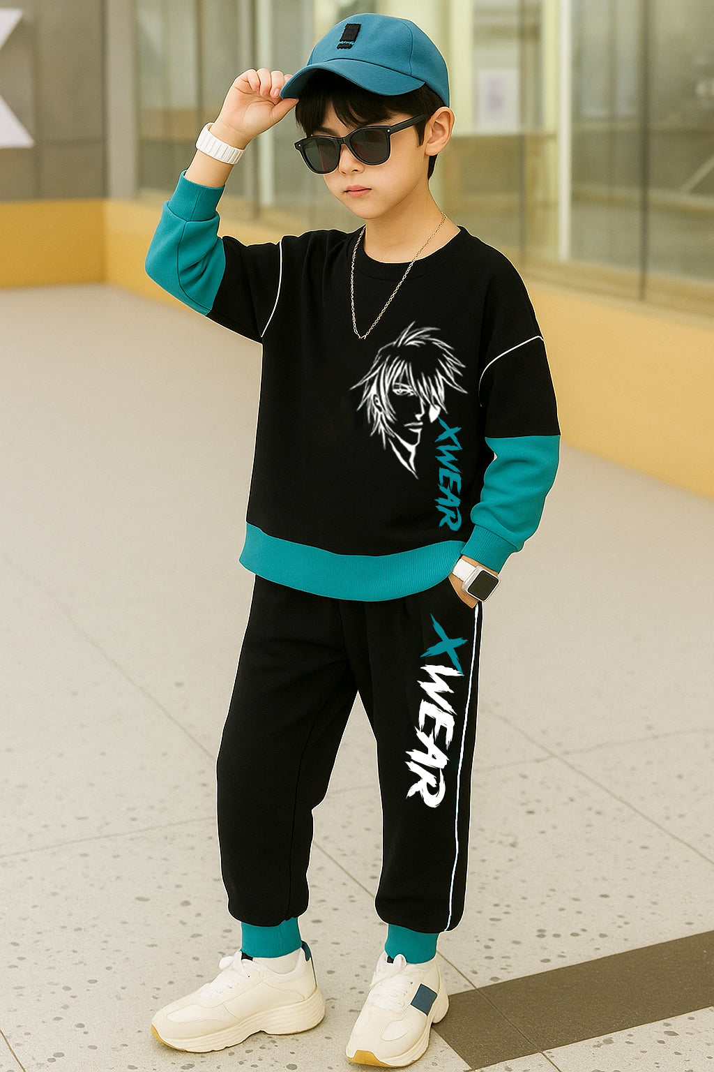 Upgrade your child’s wardrobe with this stylish kids clothing set for boys, featuring a cool XWEAR printed tracksuit design. Made from soft and breathable cotton fabric, this outfit ensures all-day comfort while keeping your little one looking fashionable. The black and teal color-block design adds a modern, sporty vibe, making it perfect for casual outings, playtime, or everyday wear.