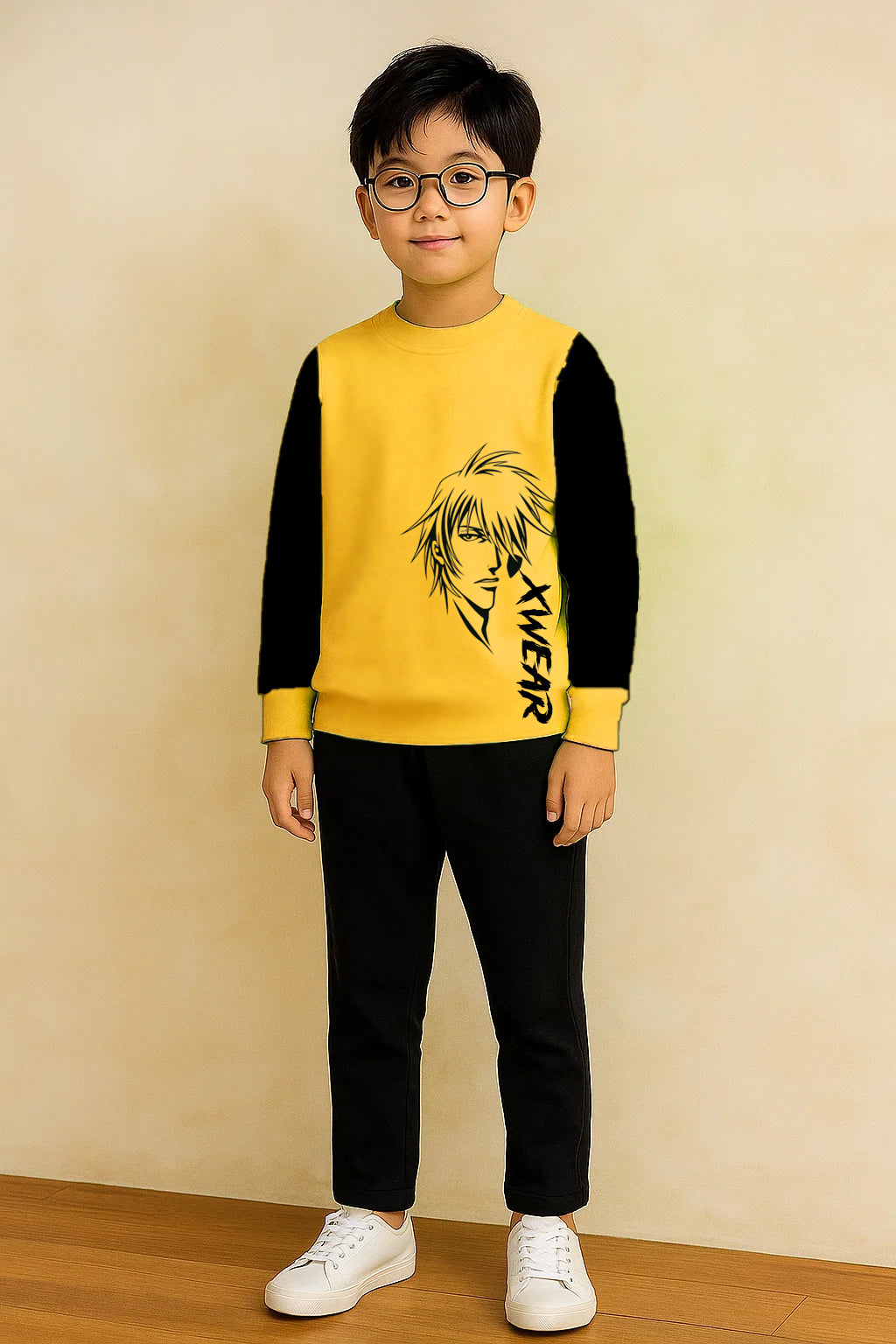 Trendy Kids Clothing Set for Boys | Yellow XWEAR Printed Sweatshirt with Black Pants