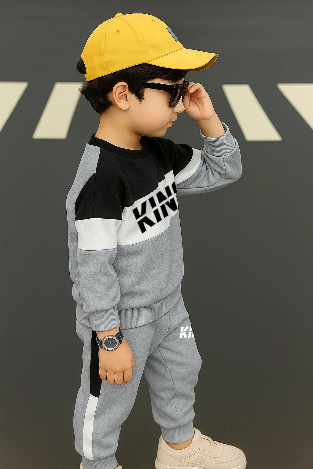 Trendy Kids Clothing Set Stylish KING Printed Cotton Tracksuit for Boys